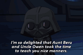I'm so delighted that Aunt Beru and Uncle Owen took the time to teach you nice manners. And just for that, I'm going to help you out here. (CARTER SCREAMING)