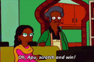 Oh, Apu, scratch and win! Mmm, that's good adultery! Oh! Oh, I am so sorry, Manjula. Oh! Get out of my home, Apu.