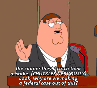 the sooner they'd catch their mistake. (CHUCKLES NERVOUSLY) Look, why are we making a federal case out of this?
