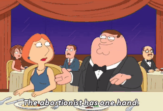 The abortionist has one hand. Missing hand on the abortionist. And we're there to get an abortion.