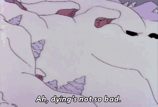Ah, dying's not so bad. I'll be reunited with my loved ones-- my dad and that plant I never watered.