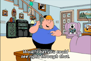 Wow! I bet you could see right through that. Chris, who are you talking to? Grandma. Oh, no! What is it? It looks like Stewie had an accident on the carpet.