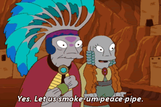 Yes. Let us smoke-um peace pipe. Smoke-um?