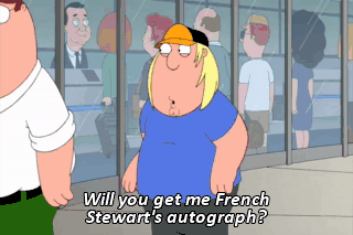Will you get me French Stewart's autograph? Say hello to the Pont Neuf for me, or as I like to call it, my inspiration point... Oop, you're gone. And the family's gone.