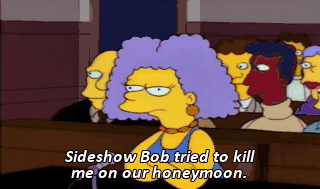 Sideshow Bob tried to kill me on our honeymoon.