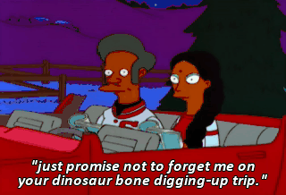 "just promise not to forget me on your dinosaur bone digging-up trip."