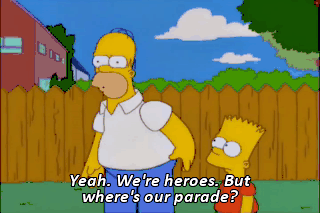 Yeah. We're heroes. But where's our parade?