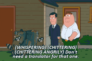(WHISPERING) (CHITTERING) (CHITTERING ANGRILY) Don't need a translator for that one. Tell him to come back when he's ready to act like an adult. (LAWNMOWER WHIRRING)