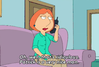 Oh, well, that's ridiculous. Patrick is a very nice man. And you should be ashamed of yourself for locking up your own son.