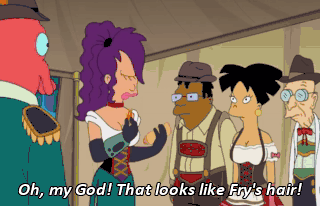Oh, my God! That looks like Fry's hair! Come on, don't make jokes like that while I'm eating. (SCREAMS)