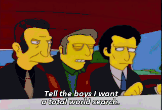 Tell the boys I want a total world search. Right, boss. I want a free car because I'm Krusty, Krusty the Clown! Get it? Krus-ty! Cancel the world search. I want everything that's coming to Krusty the Clown,