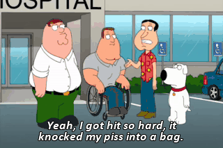 Yeah, I got hit so hard, it knocked my piss into a bag.