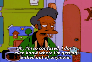 Oh, I'm so confused. I don't even know where I'm getting kicked out of anymore.