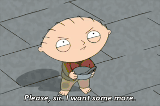 Please, sir. I want some more. What? Please, sir. I want some more. More? All right! Stop it! Stop it right there! Now go on! Fill up the bowl! Go on! That's it. Now put on this dress. Put it on!