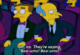 Uh, no. They're saying, "Boo-urns! Boo-urns!" Are you saying "Boo" or "Boo-urns"?