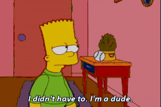 I didn't have to. I'm a dude. (GRUNTS) Butt on bowl, little man! (BOTH STRUGGLING) Hey, my pants aren't down! It doesn't matter! Ee-yow!