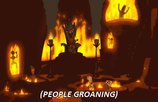 (PEOPLE GROANING) Ah. Fire. (SCREAMING) It burns! It burns! Not bad. Needs a little hot sauce.
