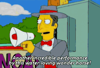 Another incredible performance by this water-loving wonder horse! What's that, Duncan? You say you want to dive again? Well-- Now, this is clearly a case of animal cruelty.
