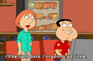 I'll be right back. I'm gonna go tinkle. Okay, everybody ready? Hey, where's Quagmire?