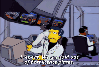 I repeat. We are sold out of Bort licence plates. I really wish they wouldn't scream.