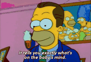 It tells you exactly what's on the baby's mind. Maggie. Maggie. Where did you go? Peekaboo! Oh, there you are. Very amusing. Homer, now what do you think?
