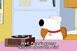 Well, Peter's gonna tell you about the bird A-well-a bird, bird, b-bird's the word A-well-a bird, surfin'... (SINGING GIBBERISH)
