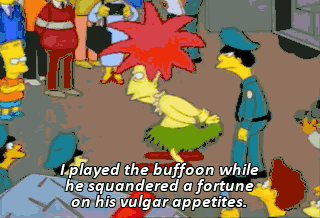 I played the buffoon while he squandered a fortune on his vulgar appetites.