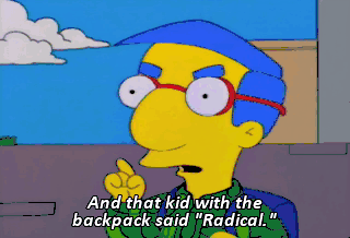 And that kid with the backpack said "Radical." I say "Radical." That's my thing that I say!