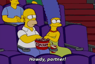 Howdy, partner! Why don't you sit next to us? Hey, Moe. Haven't seen you in a while. Yeah. How you doing there, Homer?