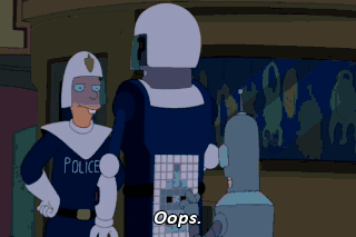 Oops. Well, well. Time to beat him his rights. (BENDER GROANING) You know, that don't look half bad on your buttocks. It does sort of class-up the place.