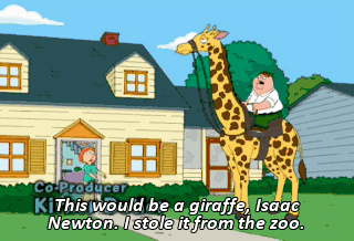 This would be a giraffe, Isaac Newton. I stole it from the zoo. What with Mayor West sending all the cops away, everybody can do whatever they want.