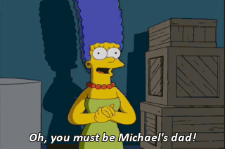 Oh, you must be Michael's dad! Marge, come on! (GRUNTS) We'll be safe in the gas chamber.
