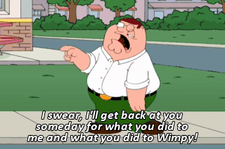 I swear, I'll get back at you someday for what you did to me and what you did to Wimpy! I would gladly pay you Tuesday for a hamburger today.