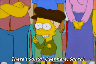 There's Santa! Over here, Santa! What did I do? Ah, the doctor said I could take this patch off five minutes a day. Hey, that's just enough time to see Santy Claus. Oh! Why, Santa? Why?
