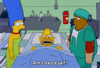 Am I dead yet? No. How about now? No! Now? I'll tell you when you're dead, Grampa. Thank you.