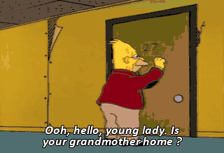 Ooh, hello, young lady. Is your grandmother home ? Oh, Abe. I can tell I'd better keep my good eye on you. Damn straight. Embrace me