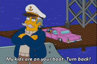 My kids are on your boat. Turn back! I see no kids. And we must get these Season One Northern Exposure DVDs to Kahramanmaras. (BOTH PANTING) Help us! Bring back our children, you Cyprus-splitting jerks!