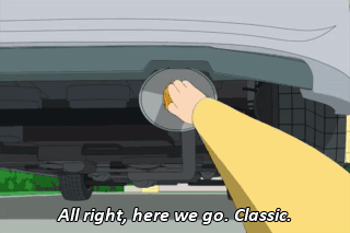 All right, here we go. Classic. Uh-oh. (ENGINE STARTS) Ow!