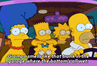Grampa smells like that trunk in the garage where the bottom's all wet.