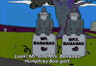 Look! Mr. and Mrs. Bananas. Humphrey Boa-gart. Oh, my poor dead kitty! Please, not you too! All right, Bob. Now it's personal! Hey! Um, he did try to kill me.