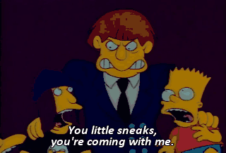 You little sneaks, you're coming with me. Next time you little hoodlums try this, I'm calling your parents !