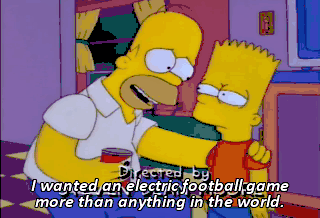 I wanted an electric football game more than anything in the world. And my parents bought it for me, and it was the happiest day of my life. Well, good night. Oh, I'll never get that game.