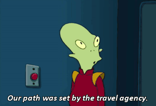 Our path was set by the travel agency. That's for schoolgirls. Now here's a route with some chest hair. But that course leads directly through a swarm of comets. Yes, comets.