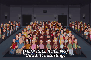 (FILM REEL ROLLING) Good. It's starting. Yeah, that's what you say. I can never figure out when the hell the studio logos end and the actual movie begins.
