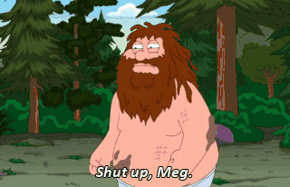 Shut up, Meg. Peter! Dad! You're back! (HALF-HEARTEDLY) Yay.