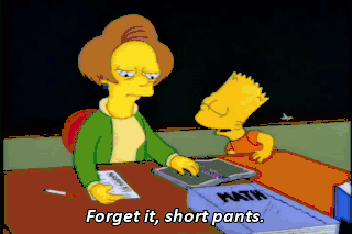 Forget it, short pants. Mrs. Krabappel, if I don't get at least a "C" average, I can't go to Kamp Krusty! Have a "D"-lightful summer!