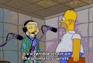 It's a terrible strain on the animators' wrists. Hi. Question for Miss Bellamy.