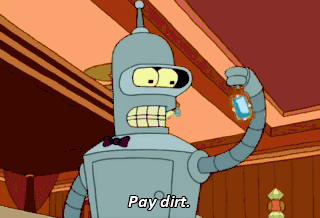 Pay dirt. Lovely, isn't it? Yeah. But only 93% as lovely as you. Oh, Bender. Either that was a computing error or you're the most romantic robot I've ever met.