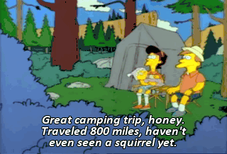 Great camping trip, honey. Traveled 800 miles, haven't even seen a squirrel yet.