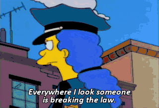 Everywhere I look someone is breaking the law. Dog, no leash. Man littering. Horse not wearing diaper.